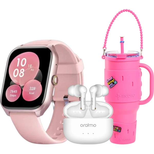 ¡COMBO MARKETPLACE! RELOJ SMARTWATCH ORAIMO ROSA + AURICULAR FREEPODS 3C + VASO INDIO 1,1L + SET DE 6 PINES