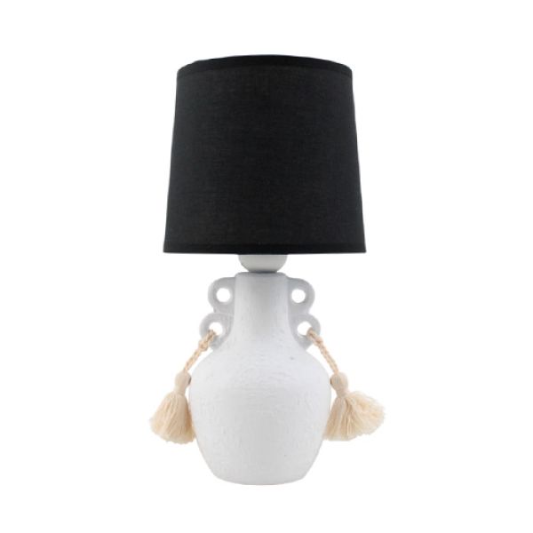 Pantalla: Cilíndrica de tela en color negro, que aporta elegancia y contraste