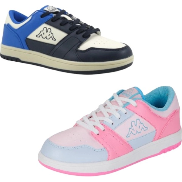 Colección Sport Logo. Calzado unisex de corte bajo para niños. Parte superior de material sintético y suela de TPR. Plantilla de espuma de doble densidad. Logotipo Omini en el lateral y letras Kappa en la parte trasera, etiqueta Omini Kappa Tongue.