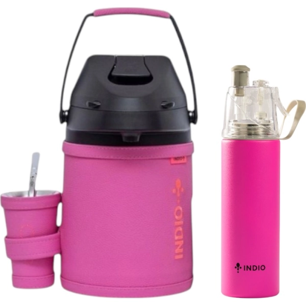 ¡COMBO MARKETPLACE! TERMO TERERE INDIO 2.5 LTS. CUERO PREMIUN ROSA OSCURO + BOTELLA SPLASH 500ML