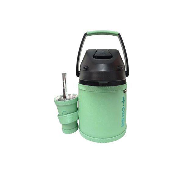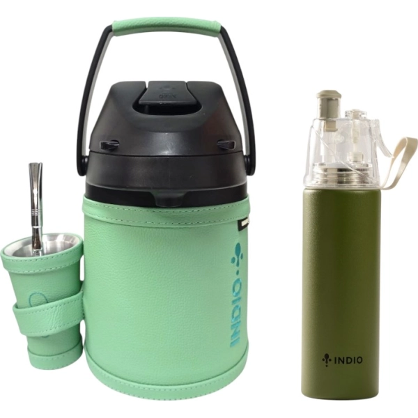 ¡COMBO MARKETPLACE! TERMO TERERE INDIO 2.5 LTS. CUERO PREMIUN VERDE TIFFANY + BOTELLA SPLASH 500ML