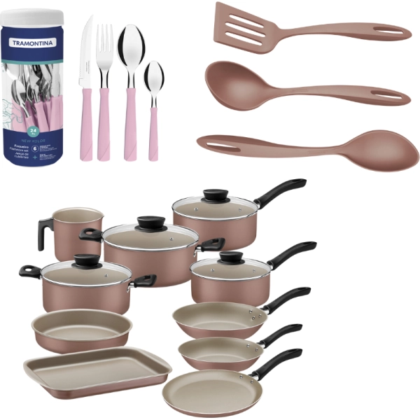 ¡COMBO MARKETPLACE! JUEGO OLLAS 10PZAS + UTENSILIOS 3PZAS + CUBIERTOS 24PZAS TRAMONTINA