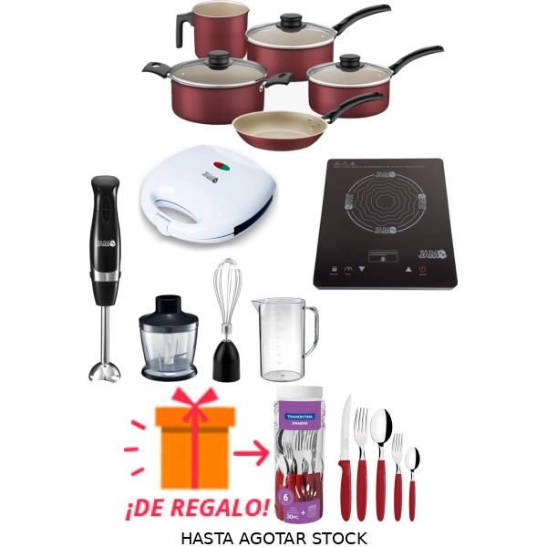 ¡COMBO 48HS ONLINE! COCINA VITROCERAMICA JAM + SANDWICHERA JAM + MIXER JAM + OLLAS TRAMONTINA