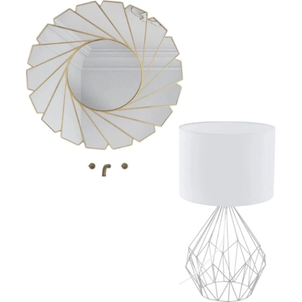 ¡COMBO MARKETPLACE! VELADOR MESA 1L E27 BLANCO + ESPEJO DECORATIVO DISEÑO ESPIRAL MODERNO