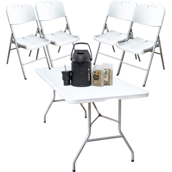 ¡COMBO MUEBLES! MESA PLEGABLE + 4 SILLAS PLEGABLES + TERMO TERERE INDIO 2.5 LTS. NEGRO + GUAMPA + BOMBILLA + 2 YERBAS