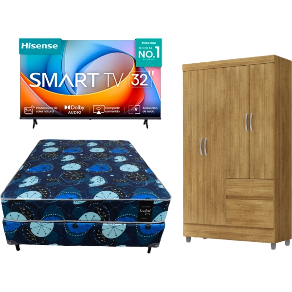 ¡COMBO MARKETPLACE! CAMA NEOFLEX + ROPERO MOVELMAX + TV HISENSE 32" SMART