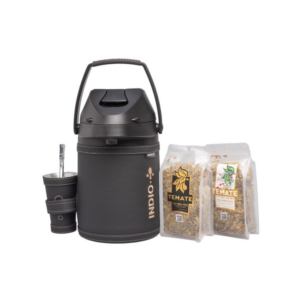 TERMO INDIO ACERO INOX 2,5 LTS. SIMIL CUERO PREMIUM NEGRO