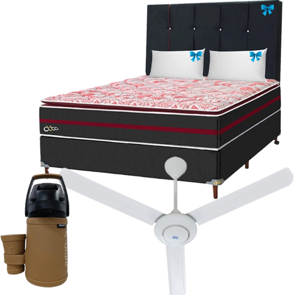 ¡COMBO 48 HORAS! BASE CON COLCHON ABBA 160X200 RECREARE PILLOW TOP NEGRO / BORDO + CABECERA + 2 ALMOHADAS + VENTILADOR DE TECHO JAM MOTOR PESADO 3 ALAS 5VEL. + TERMO TERERE INDIO ACERO INOX 1.3 LTS. SIMIL CUERO MARRON SUELA + GUAMPA