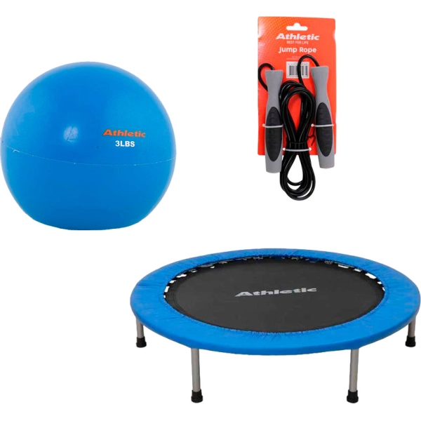 ¡COMBO MAMÁ FELIZ! TRAMPOLIN ATHLETIC 40" + PELOTA BLANDA 3LBS ATHLETIC + CUERDA RAPIDA PARA SALTAR