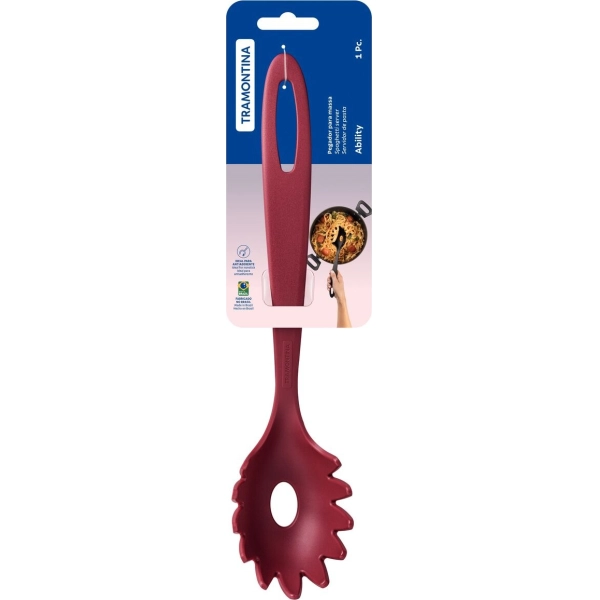 ¡Con el soporte para pasta Tramontina Ability de nailon rojo, servir tus recetas de pasta se vuelve aún más práctico y fácil! Perfecto para todo tipo de preparaciones, está fabricado en nailon, un material que soporta un uso a temperaturas de hasta 180° grados. Además, es muy fácil de limpiar y se puede lavar en el lavavajillas. ¡Viene en un elegante color rojo, que añade un toque elegante a tu cocina!