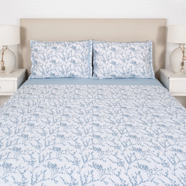 JUEGO DE SABANA PILAR 100X200 COL.II/2023 IRIS RAMITAS CELESTE 1131702