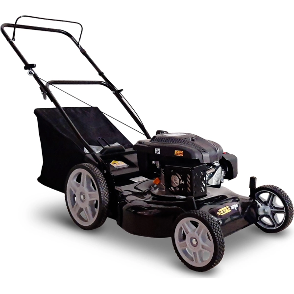 CORTA CESPED A COMBUSTION 4,5HP.rn- Con carcasa de acero.rn- 2 mm de espesor.rn- Cuchilla con tratamiento térmico.rn- Corte de 20" (45cm).rn- Bolsa recolector de 55 litros.rn- Regulación de altura de 5 posiciones.rn- Rueda delantera de 8" y trasera de 12", reforzadas.rn- Aceite motor de 620ml SAE 30.rn- Recomendada para superficies de 2500m².