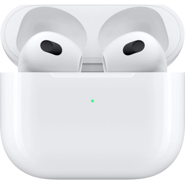 Los auriculares Apple AirPods de tercera generación son auriculares inalámbricos de alta calidad diseñados para ofrecer una experiencia auditiva excepcional y sin interrupciones. Los auriculares cuentan con tecnología Bluetooth 5.0 para una conectividad inalámbrica rápida y estable, lo que significa que se pueden emparejar fácilmente con cualquier dispositivo compatible con Bluetooth, como un iPhone, iPad, Apple Watch o Mac. Los AirPods de tercera generación vienen con un estuche de carga que no solo protege los auriculares cuando no se están usando, sino que también los carga de manera inalámbrica cuando se colocan en el estuche. El estuche de carga cuenta con un conector Lightning que permite cargar el estuche con un cable Lightning.rnLos auriculares tienen una duración de batería de hasta 6 horas con una sola carga, mientras que el estuche de carga puede proporcionar varias cargas adicionales para un total de hasta 30 horas de reproducción de audio. Además, los AirPods de tercera generación cuentan con una serie de características útiles, como la cancelación activa de ruido, el modo de sonido ambiente y la integración de Siri para control de voz y acceso a información.rnLos AirPods de tercera generación tienen un diseño elegante y minimalista que se adapta cómodamente a los oídos, con una calidad de sonido excepcional que ofrece graves profundos y agudos nítidos. Además, los AirPods están diseñados para ser resistentes al agua y al sudor, lo que los hace ideales para usar durante actividades físicas o en climas húmedos.