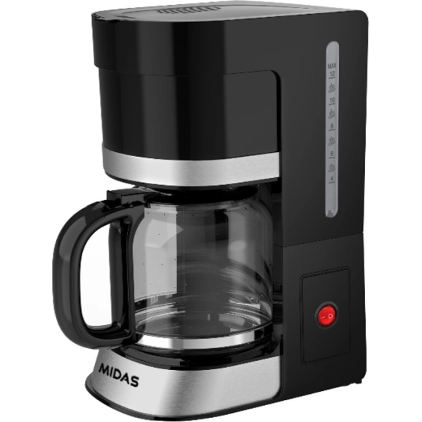 Comenzá el día con el aroma perfecto del café recién hecho. La cafetera MIDAS de 12 tazas ofrece 800W de potencia y una jarra de vidrio refractario con capacidad de 1.2L. Su sistema anti-goteo evita derrames al retirar la jarra, mientras el portafiltro con filtro de nylon removible facilita la limpieza. Incluye regleta transparente para controlar el nivel de agua y función de mantenimiento en caliente. Con encendido/apagado manual, es práctica, segura y lista para acompañarte cada mañana.