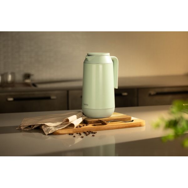 La jarra térmica Tramontina Exata de 1 litro en acero revestido en verde es la combinación perfecta de funcionalidad y diseño moderno. Este vaso individual destaca por su aspecto contemporáneo y su practicidad: ligero y fácil de manipular, cuenta con un botón de operación en la tapa que facilita su uso diario y mantiene las bebidas a la temperatura ideal por más tiempo, ya sean calientes o frías. Su indicador está diseñado para servir con precisión y evitar derrames. El asa, ubicada ergonómicamente, garantiza comodidad durante el uso y el transporte. Con una ampolla de vidrio de doble pared sellada al vacío, esta jarra garantiza que los líquidos se mantengan fríos o calientes durante períodos prolongados. Fabricada con materiales seguros y componentes libres de BPA, es una opción confiable para cualquier ocasión. Fabricada en acero revestido en un divertido color verde, la jarra térmica Tramontina Exata es el complemento perfecto para mejorar tu cocina cada día.