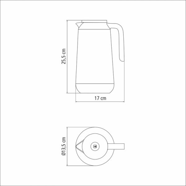 Retire correctamente todos los materiales del embalaje y lave bien el producto antes del primer uso; La jarra térmica Tramontina posee un sistema de tapa/abrazadera con accionamiento por gatillo que la torna un producto práctico para servir, además de mantener mejor la temperatura de los líquidos; Por ser un producto de mesa, se recomienda mantenerla siempre en posición vertical, pues períodos prolongados en posición horizontal (de lado) pueden provocar pérdidas; No coloque el producto en hornos eléctricos, microondas, congeladores, refrigeradores ni lavadoras; La capacidad volumétrica puede presentar una variación de hasta el 10% en su volumen nominal indicado; Luego de agregar el líquido e iniciar su uso, asegúrese de que el producto esté bien cerrado.