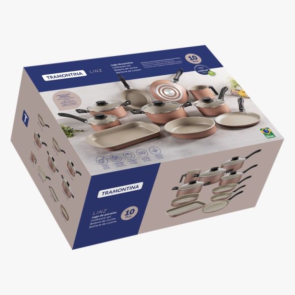 Juego de ollas Tramontina Linz en aluminio con revestimiento interno y externo en antiadherente Starflon Max mocaccino 10 piezas es la opción ideal para quien busca un juego completo y funcional. Con diferentes formatos y capacidades, satisface las más variadas necesidades en la cocina. Las piezas son producidas en aluminio con revestimiento antiadherente, que proporciona cocción uniforme, evita que los alimentos se peguen y facilita la limpieza. Los mangos y asas antitérmicos garantizan seguridad durante el uso, y las tapas de vidrio templado con bordes de acero inoxidable ayudan a acompañar la preparación. Un juego versátil para hacer que el día a día sea más práctico.