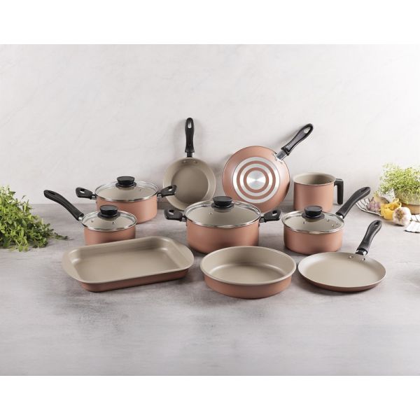 Juego de ollas Tramontina Linz en Aluminio con Revestimiento Interno y Externo con Antiadherente Starflon Max Mocaccino 10 piezas
