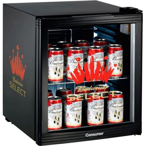 MINI VISICOOLER 55 LTS .PUERTA VISOR DE DOBLE VIDRIO LUZ CERRADURA CONSUMER.