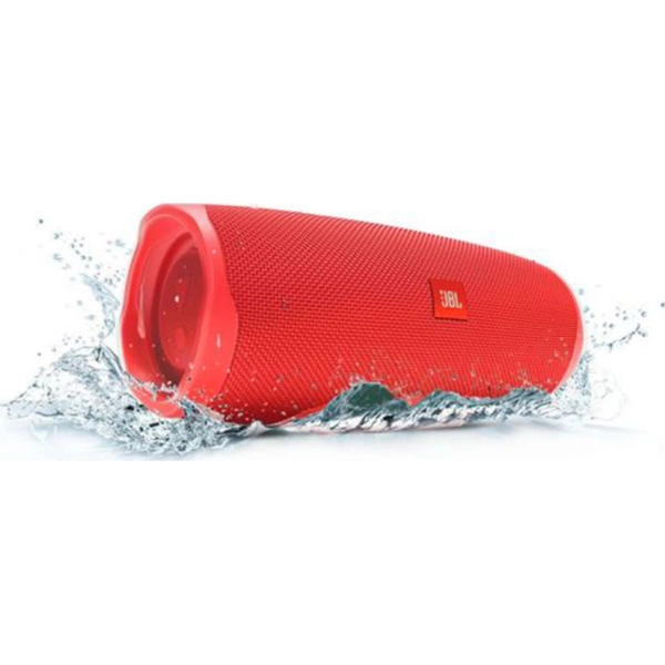 El altavoz portátil Bluetooth JBL Charge 4 con espectro completo, sonido potente y un banco de energía incorporado para cargar sus dispositivos. Cuenta con un controlador desarrollado patentado y dos radiadores de bajos JBL que intensifican el sonido con graves profundos fuertes.