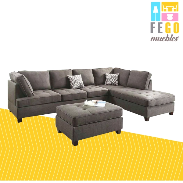 SOFA ESQUINERO BERNA CON PUFF GRIS OSCURO FEGO MUEBLES