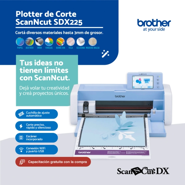 - El nuevo plotter de corte ScanNCut SDX 225 corta diversos materiales de hasta 3 mm de grosor: papel, cartulina, vinilo, goma eva, acetato, silicona, madera balsa, tela, imán!