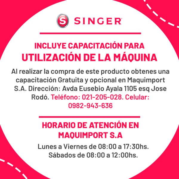 Al realizar la compra de este producto obtenes una capacitación Gratuita y opcional en Maquimport S.A. Dirección: Avda Eusebio Ayala 1105 esq Jose Rodó. Teléfono: 021-205-028. Celular: 0982-943-636