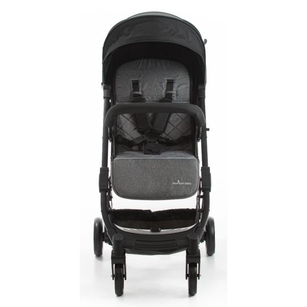 Para mayor seguridad, cuenta con un arnés de 5 puntos ajustable, barra de seguridad removible y sistema de frenos con un solo toque. Además, su cesta de almacenamiento espaciosa y su manija tipo maleta hacen que cada paseo sea más cómodo y funcional.