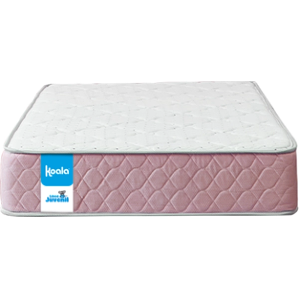El colchón juvenil Koala, color rosa cubierto con capaz de espuma y resortes tipo bonell, tejido de punto, jacquard matelaseado. Tratamiento anti hongos y anti ácaros.