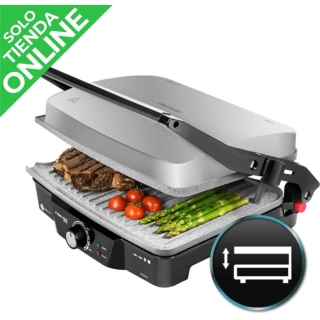 Aporta una mayor comodidad de uso. Con asas laterales para su transporte, también tiene una bandeja recolectora de grasa, indicador de nivel de agua y ajuste de altura en la parrilla, para controlar mejor la preparación de los alimentos.