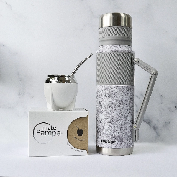 COMBO MATERO CONTIGO TERMO MARMOL 1.1LTS. C/ MANIJA + GUAMPA PAMPA + BOMBILLA INOX