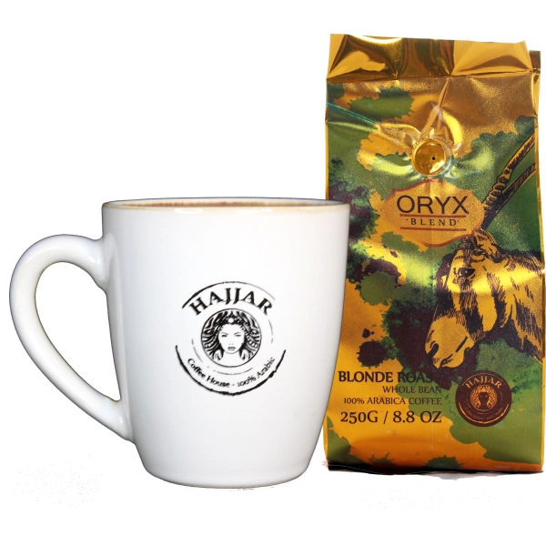 Café “ORYX” de HAJJAR®️, inspirado en este mamífero de la familia del bóvido que forma parte de la fauna en la península arábiga. De tueste claro, con sabores delicados, dando como resultado un café con aromas florales y afrutadas con una excelente acidez y además un cuerpo más liviano. Es en los tuestes claros donde se pueden saborear las características naturales del café.