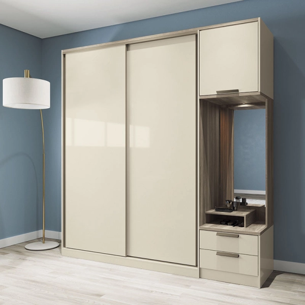 Con un diseño innovador y moderno el ropero Tivolli tiene todo lo que necesitas ya que cuenta con 1 espejo, 1 soporte de repisa para soporte de perfumería, luz led en el espejo con interruptor, Maletero, Zapatero con espacio para 2 nichos y gran espacio para una mejor organización.