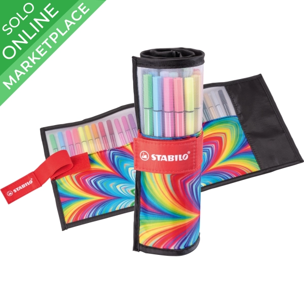 Estuche ARTY rollerset con 25 rotuladores premium STABILO Pen 68. Rotulador de alta calidad con punta de fibra e intensos colores para trazos fuertes y amplias zonas a colorear. Pigmentos seleccionados con gran brillo y luminosidad. Punta media resistente. Ancho de trazo 1 mm.