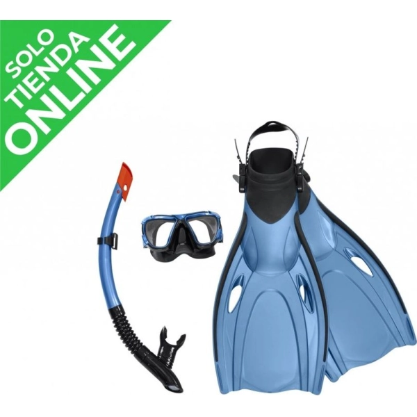KIT DE BUCEO MASCARA + SNORKEL + ALETAS 14+. BESTWAY 25044