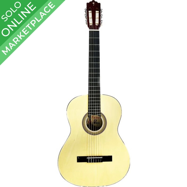 Es una guitarra clásica para principiantes de 3/4 con cuerdas de nylon la cual entrega un excelente sonido clásico a un gran precio. Con el delgado perfil del mástil y el diapasón de los trastes anchos hacen el rasgueo muy fácil. También, sus cuerdas de Nylon son excelentes para estudiantes, ya que la tensión en las cuerdas es significativamente más ligera que las cuerdas de acero regularmente usadas. Esto ayuda a los principiantes, ya que es un poco más ligero en cuanto se trata de empezar a tener fuerza en los dedos y memoria muscular.