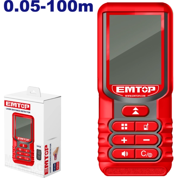 El Medidor de Distancia Laser Emtop EMDL1520 tiene un rango de medicion de 0,05 a 100 metros, una precision de ± 2,0 mm y utiliza un laser de 635 nm con una potencia de menos de 1 mW. Ofrece una solucion rapida y conveniente para aplicaciones de medicion a distancia que de otra forma requeriria muchos pasos para alcanzar.