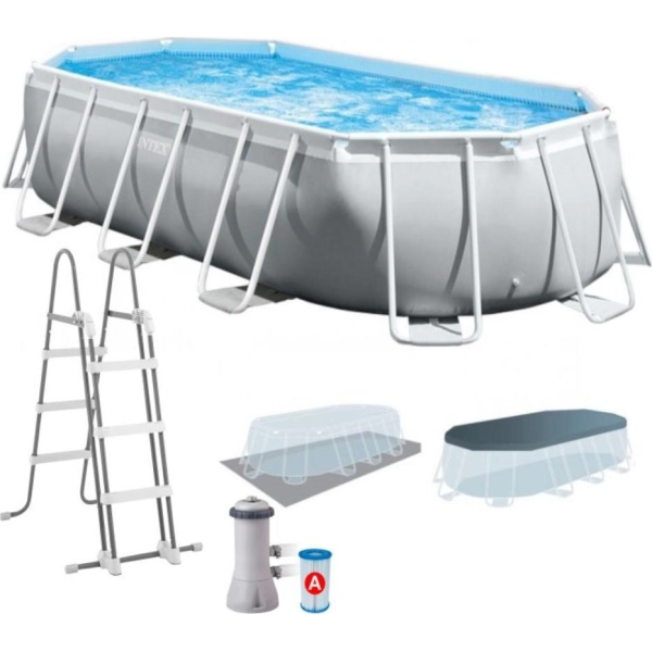 Piscina elevada de formato ovalado INTEX gama Prism Frame, medidas piscina: 503x274x122 cm, capacidad 13.365 litros de agua.