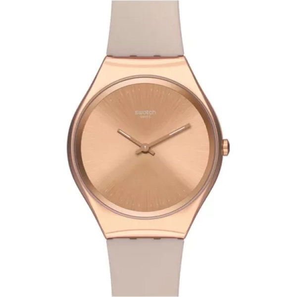 ¡Un brindis por el SKINROSEE (SYXG101)! La esfera satinada y brillante en tono rosado y rosa dorado rezuma elegancia y combina con la correa mate y la hebilla en rosa dorado.