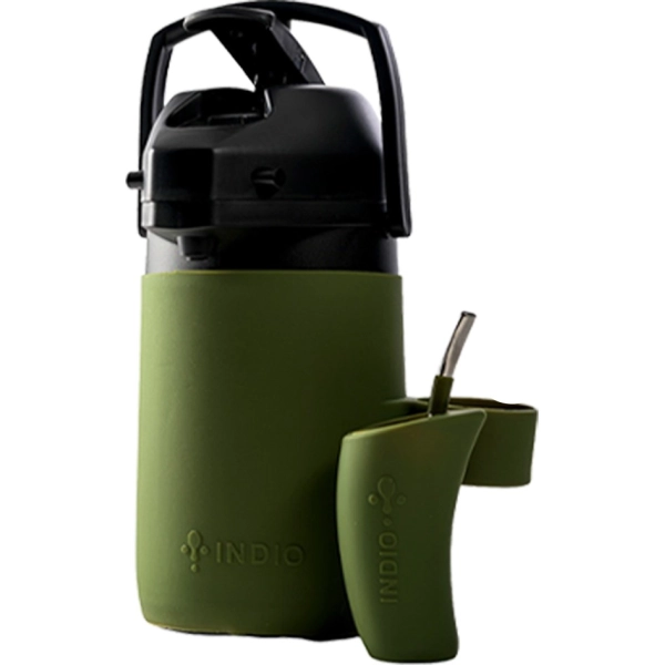 TERMO TERERE INDIO 1.9LTS. ACERO INOX SILICONA SKIN VERDE OLIVO + GUAMPA + BOMBILLA INOX