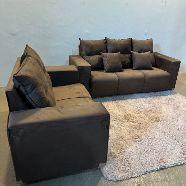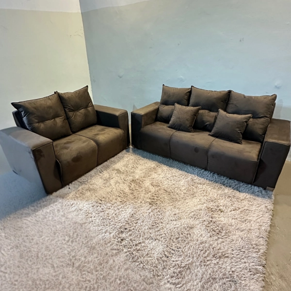 SOFA MOVELMAX ALELI 3-2 LUGARES MARRON + 2 ALMOHADAS