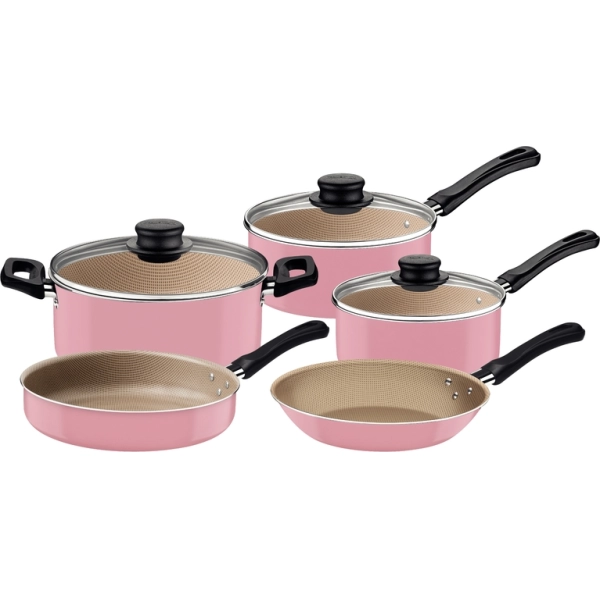 Batería de Cocina Tramontina Caribe en Aluminio con Revestimiento Interno con Antiadherente Starflon Max y Externo de Poliester Rosa 05 Piezas