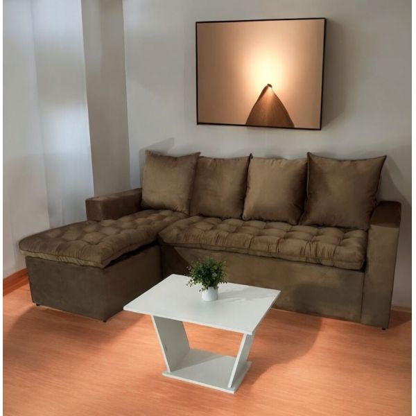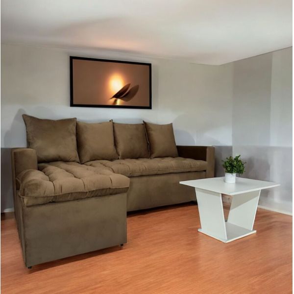SOFA UNANIME ATYRA BEIGE 3 LUGARES + CHAISE + MESITA DE REGALO