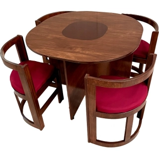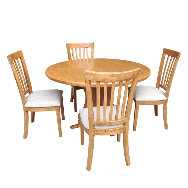 JUEGO DE COMEDOR EN MADERA LUSTRE FILIPINO CON 4 SILLAS ASIENTO TAPIZADO IMPACTO