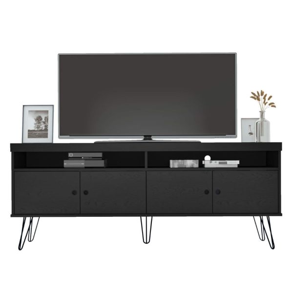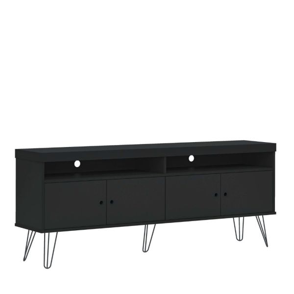 El Rack Liberty está diseñado para televisores de hasta 65", ofreciendo un estilo retro y funcional. Sus pies metálicos brindan estabilidad y un toque moderno, mientras que la tapa de Tamburato añade durabilidad y elegancia.