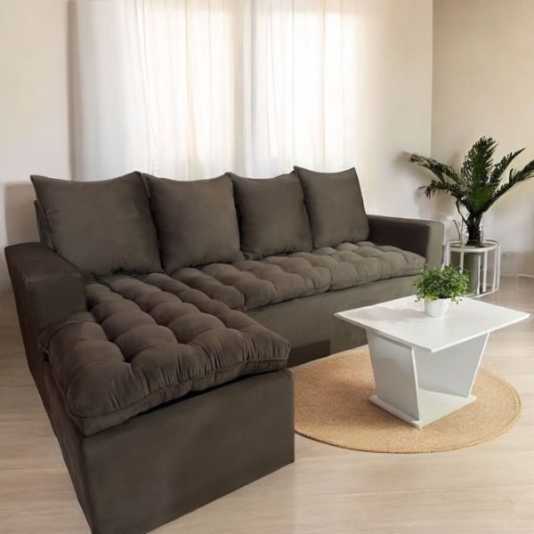 SOFA UNANIME ATYRA MARRÓN 3 LUGARES + CHAISE + MESITA BLANCO