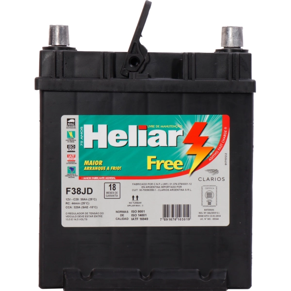 BATERIA HELIAR F38JD 38AH DER C/ INSTALACION