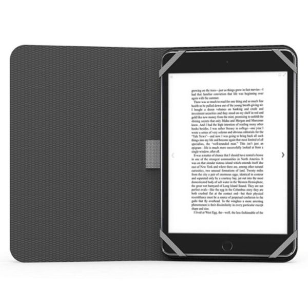FUNDA UNIVERSAL PARA TABLET DE 7-8" NEGRO.SOPORTE PARA BOLÍGRAFO/LÁPIZ.BANDAS FLEXIBLES SUJETAN DE FORMA SEGURA LA TABLETA EN SU LUGAR.ACCESORIOS PARA VISUALIZACIÓN Y ESCRITURA HORIZONTAL O VERTICAL CON MANOS LIBRES.