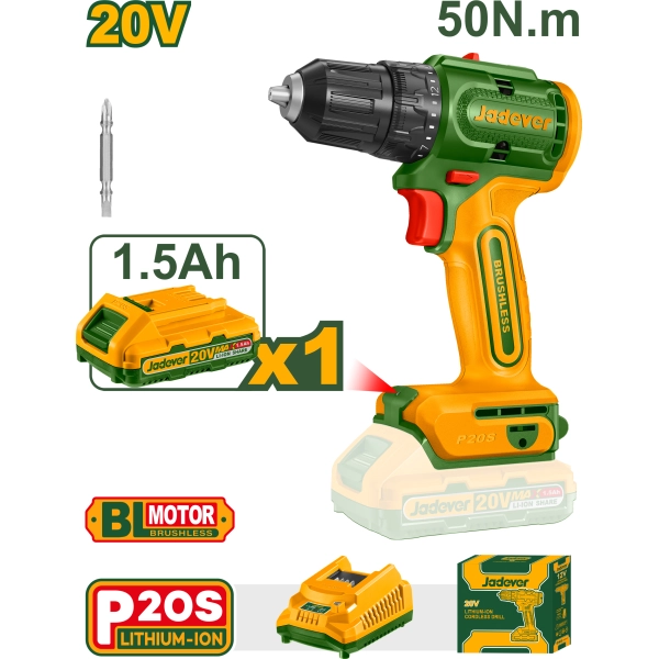 TALADRO ATORNILLADOR BR JADEVER 10MM. 50NM 20V JDCDP5521