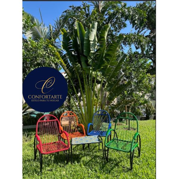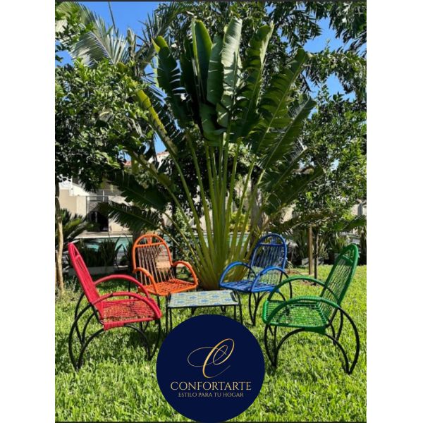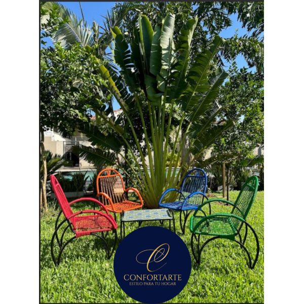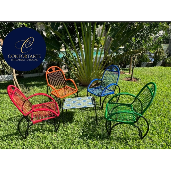 JUEGO DE SILLON ABANICO CABLE COLOR MIXTO C/ 4 SILLON + MESITA CONFORTARTE